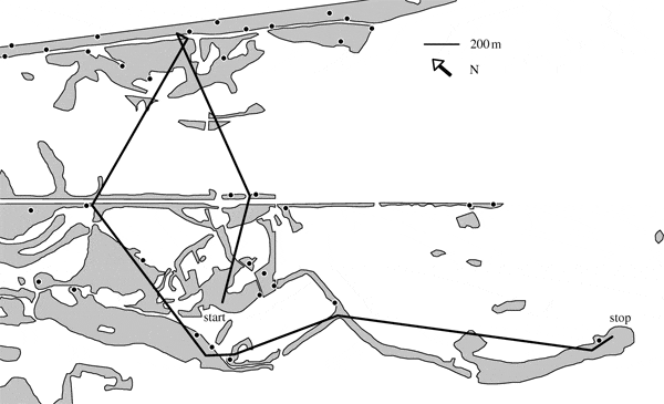 В район, где непосредственно проводились исследования и где уже было хорошо изучено территориальное распределение самцов, были привезены 10 самок, пойманных на расстоянии 70 км от данной местности. Перевозили самок в период, когда только началось образование брачных пар. На спину каждой перевезенной самке прикрепляли (специальным, не раздражающим кожу клеем) миниатюрный радиопередатчик (вес его 1 г, что составляло в среднем 4,6% от веса тела птицы). Такой передатчик работает до 2–3 недель, пока у него не сядет батарейка. Впрочем, нередко передатчик теряется и раньше. Кроме того, птица может улететь достаточно далеко и тогда сигнал становится слишком слабым или вообще пропадает.